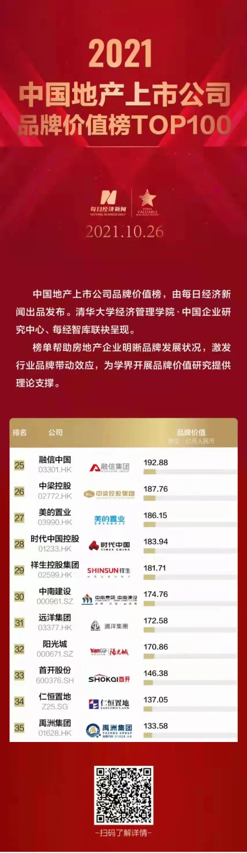 ▲祥生控股集團榮登2021中國上市公司品牌價值榜TOP29